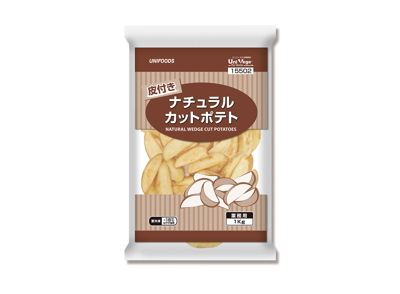 - じゃがいもを長さ約4~9cmのナチュラルカットにし、油で揚げて急速凍結しました。 凍ったまま約170~180℃の油で約3分30秒~4分30秒油調するだけで簡単に調理できます!