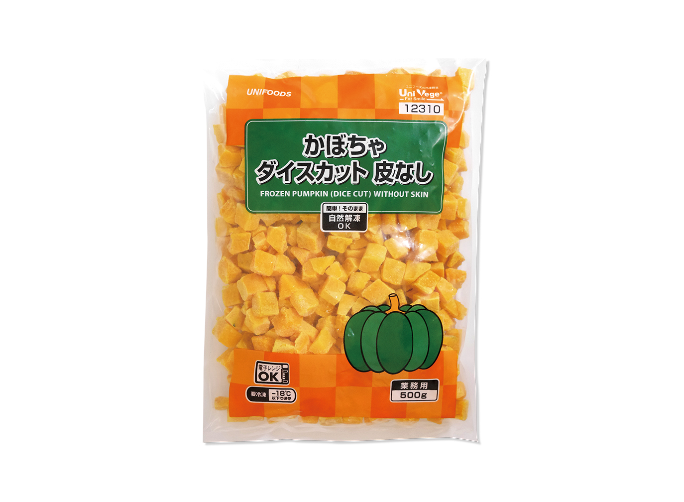 中国産 自然解凍OK かぼちゃダイスカット皮なし