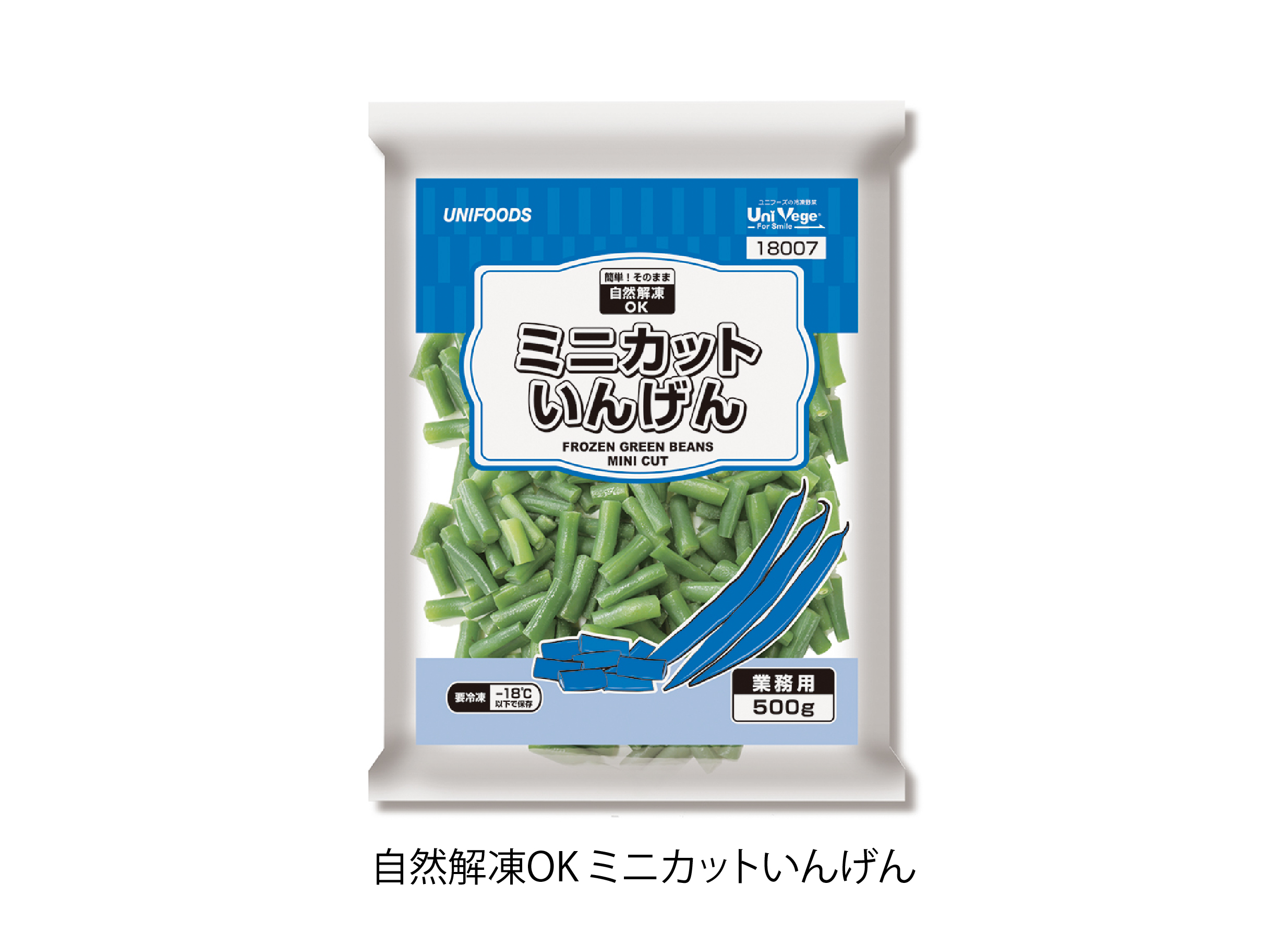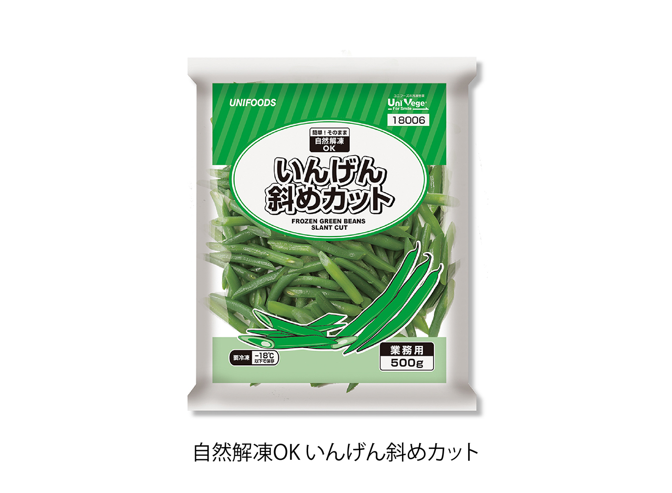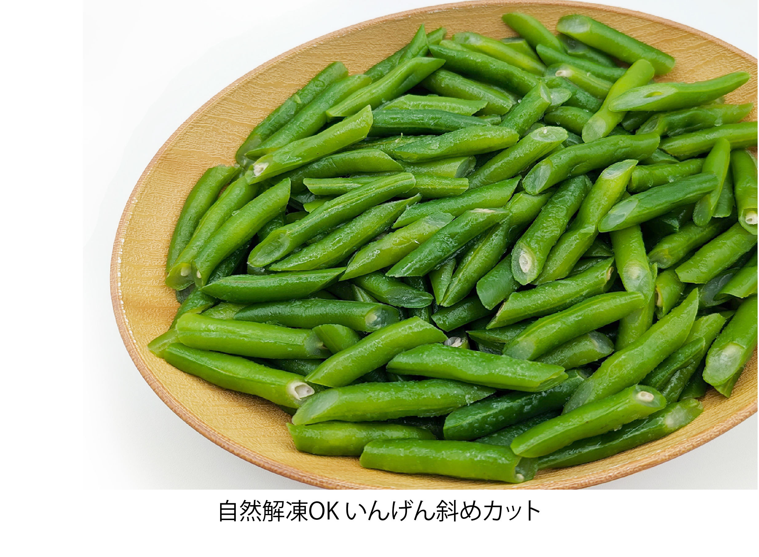 - 自然解凍OKで簡単調理。ごま和え、肉巻き、肉じゃがなどにおすすめです。